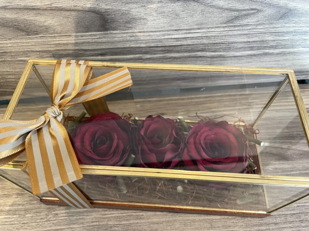 お客様からお預りしたお花は、特殊な方法で丁寧に乾燥させ、当店フローリストがを込めて加工致します。生花に精通した経験豊富なフローリストだからこそ、お花の種類や状態に合わせて最適な加工方法を選んで加工しております。加工後は湿気や埃から守るために、乾燥剤入りのフレームやガラスケースにデザインし、質の高いサービスをお手頃な価格でご提供しております。
