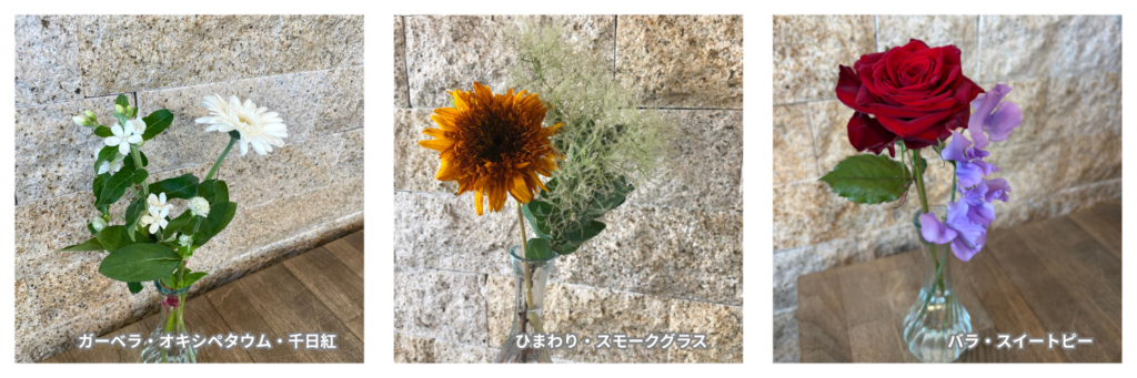 ・配送型は送料を含め1,000円前後かかることが一般的ですが、店舗受け取りなら1回412.5円。コーヒー1杯分ほどの価格で、プロが選んだ新鮮な季節の花を楽しめます。