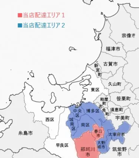 当店配達エリア2福岡市南区、城南区、博多区、中央区、大野城市、太宰府市880円